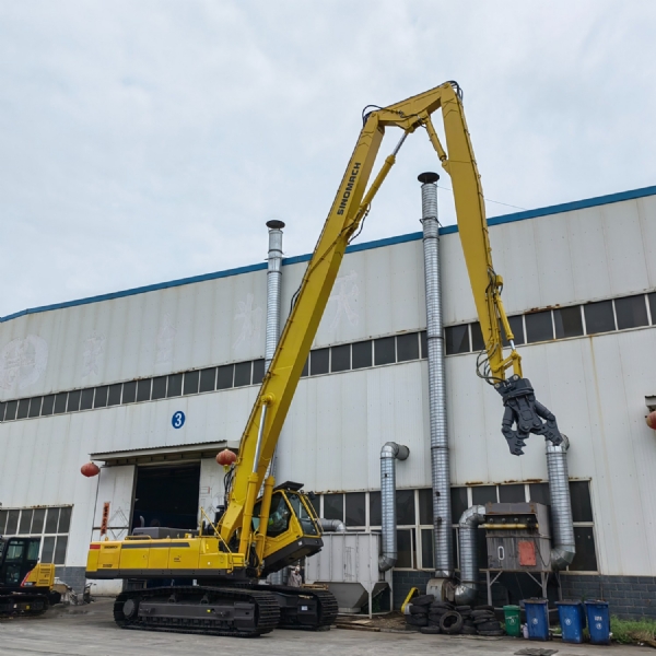三節(jié)臂是為延長(zhǎng)挖掘機(jī)工作范圍根據(jù)工況要求而設(shè)計(jì)制造的挖掘機(jī)前端工作裝置,不改變?cè)型诰驒C(jī)的使用性能,采用高強(qiáng)度合金板制造,極大提高作業(yè)范圍,工作范圍 13米-30米挖掘機(jī)加長(zhǎng)臂使用范圍較廣、功能較多,其本具有挖掘、破碎、清鉤、鉆孔、推土等功能,從某種角度上來說切實(shí)的實(shí)現(xiàn)了一機(jī)多用的功能。挖掘機(jī)三節(jié)臂提升了挖掘機(jī)的機(jī)械化程度,機(jī)身 360°無壓力旋轉(zhuǎn)更是為設(shè)備的后續(xù)施工提供了便捷,此外該設(shè)備能夠在一些相對(duì)狹小的區(qū)域內(nèi)工作,更是增加了施工的便利性。