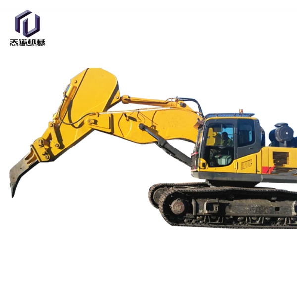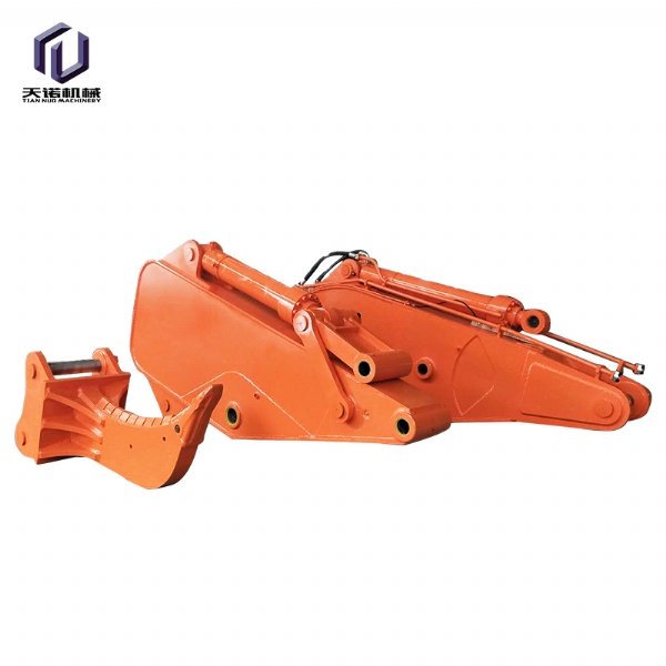 挖掘機(jī)巖石臂也稱鷹嘴臂、超級(jí)勾是風(fēng)化石、頁巖石、紅沙巖等挖掘破碎的利器,比傳統(tǒng)的破碎錘作業(yè),具有高 效率低損耗的好處,相比傳統(tǒng)的爆破作業(yè)而言作業(yè)效率更高,破碎成本更低,維護(hù)成本也很低。因?yàn)檎w的臂進(jìn)行縮短和內(nèi)部填充加重,像 45 噸左右的機(jī)型大小臂可達(dá) 16-17 噸,能夠很大程度上面增加了挖掘機(jī)的挖掘力度,能夠克服更加惡劣的工作環(huán)境。